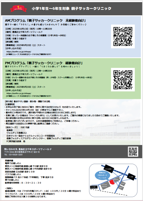 お知らせ一覧へ戻る10月13日(月)スポーツの日に無料でご参加いただけるサッカーイベントを開催いたします。