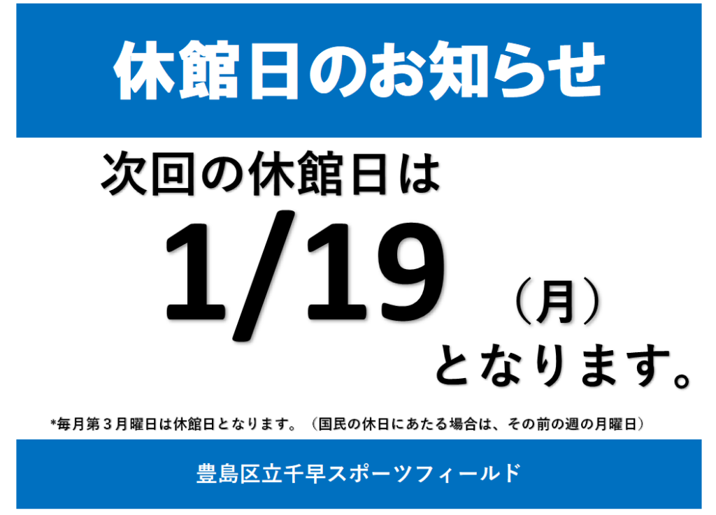令和8年 1月休館日のお知らせ